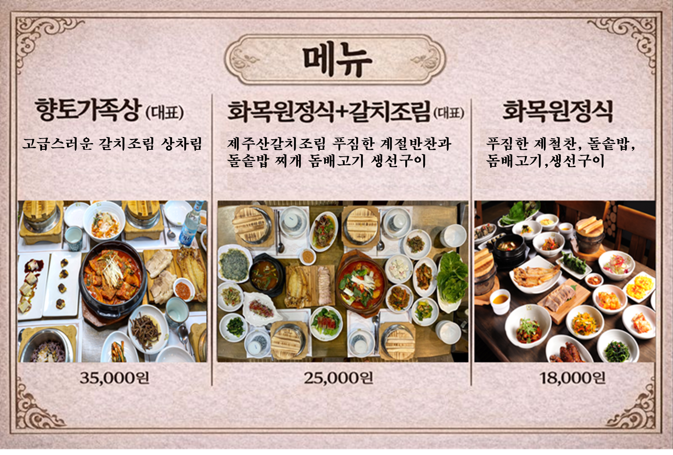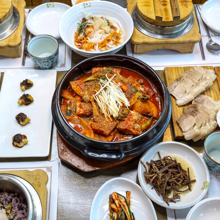 **済州韓定食と済州産太刀魚の煮付け(カルチジョリム)**が自慢の名店です。